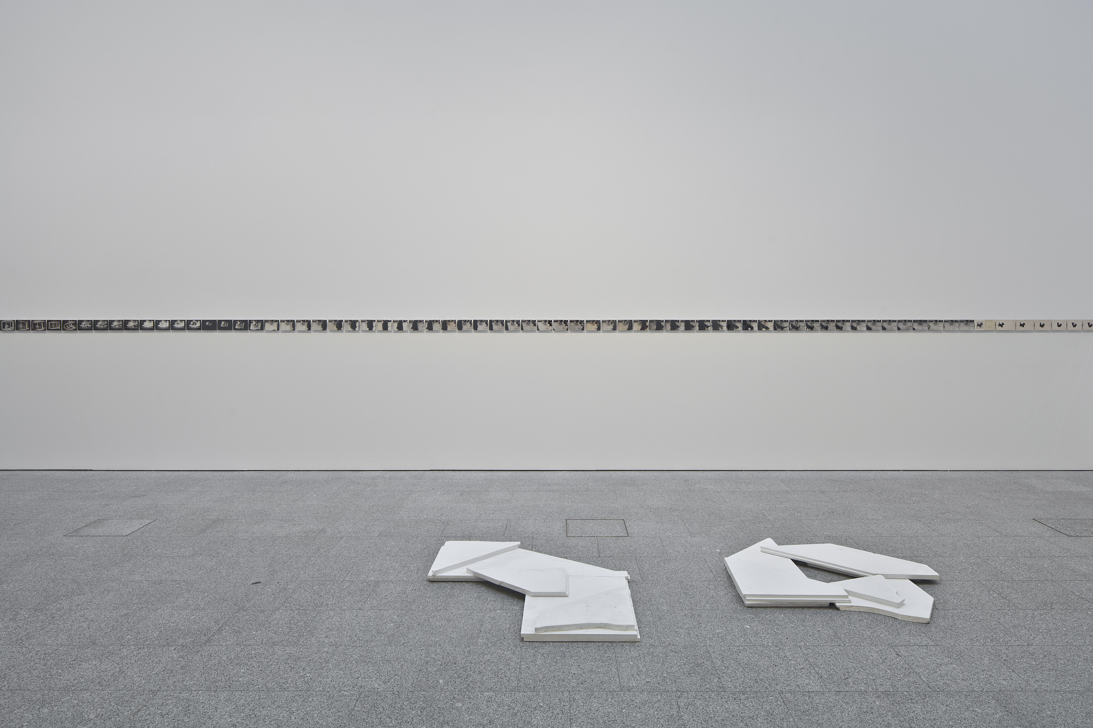 Vista da exposição ‘O Narrador Relutante’: Armando Andrade Tudela, Placa 3, 2011. E Derek Boshier. Change. 1973. Cortesia dos artistas e Museu Coleção Berardo. Fotografia da exposição: David Rato.