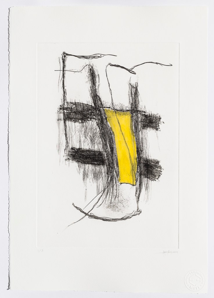 Alexandre Conefrey, Sem título/Untitled, 2014. Verniz mole, verniz duro e monotipia s/ papel Somerset Radiant White, 300 gr. Soft varnish, hard varnish and monotype on 300-gram Somerset Radiant White paper 39 x 27,8 cm. Cortesia do artista e Fundação EDP.