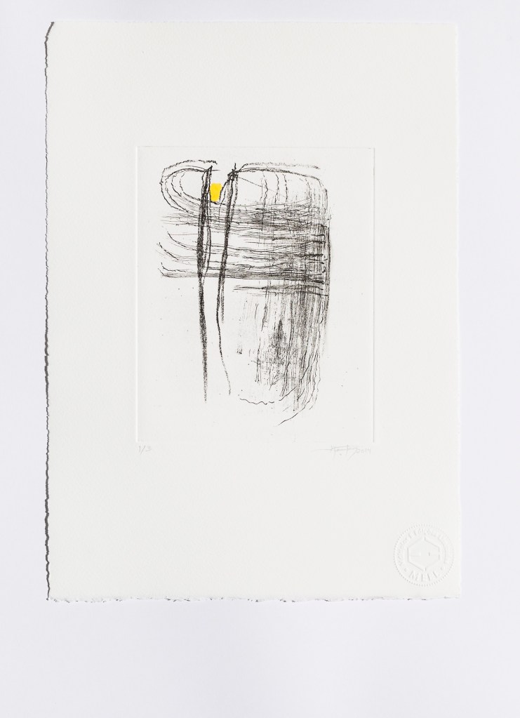 Alexandre Conefrey, Sem título/Untitled, 2014. Verniz mole, verniz duro, água-tinta e monotipia s/ papel Somerset Radiant White, 300 gr. Soft varnish, hard varnish, aquatint and monotype on 300-gram Somerset Radiant White paper 39 x 27,8 cm. Cortesia do artista e Fundação EDP.