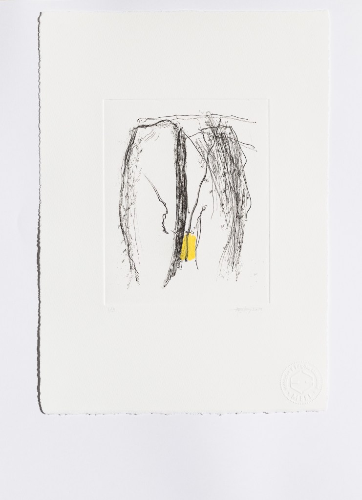 Alexandre Conefrey, Sem título/Untitled, 2014. Verniz mole, verniz duro e monotipia s/ papel Somerset Radiant White, 300 gr. Soft varnish, hard varnish and monotype on 300-gram Somerset Radiant White paper 39 x 27,8 cm. Cortesia do artista e Fundação EDP.