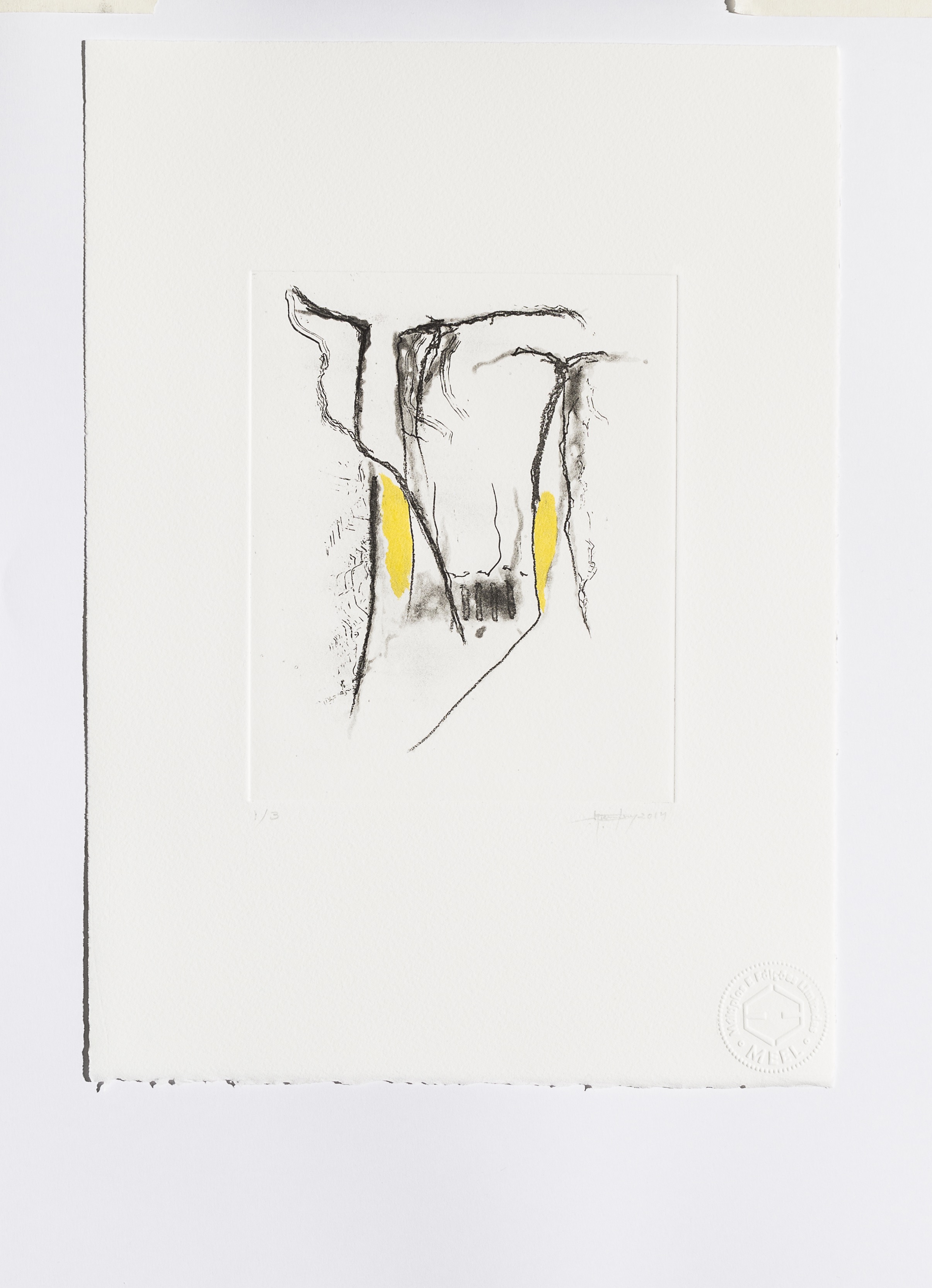 Alexandre Conefrey, Sem título/Untitled, 2014. Verniz mole, verniz duro, água-tinta e monotipia s/ papel Somerset Radiant White, 300 gr. Soft varnish, hard varnish, aquatint and monotype on 300-gram Somerset Radiant White paper 39 x 27,8 cm. Cortesia do artista e Fundação EDP.