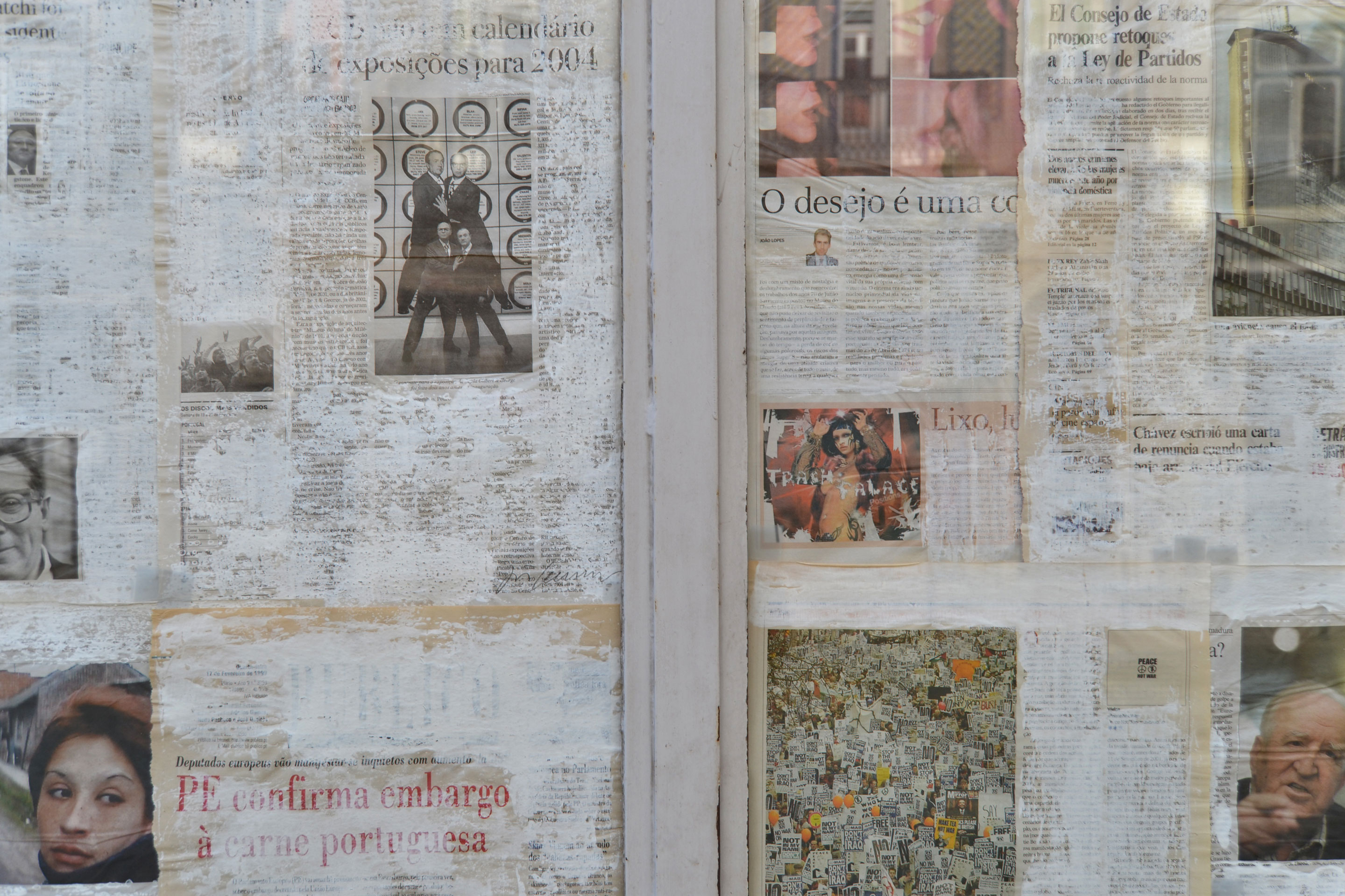 Joao Felino, da série newspaper paintings; desenhos preparatórios, acrílico sobre papel de jornal; dimensões variáveis de acordo com o formato original da folha de papel; 1990 – – ongoing; vista de pormenor da instalação; newspaper paintings ‘ desenhos preliminares, A Montra, Lisboa, Jan 17 – Fev 1, 2015. © fotografia Raquel Melgue.