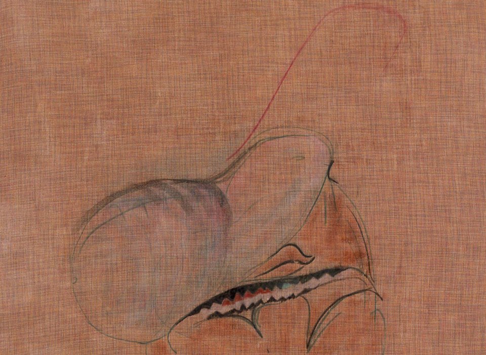 Robin Vanbesien, sem título (Gravidade), detalhe, 2014, acrílico, pastel e carvão sobre tela, 92 x 84 cm. Cortesia do artista e Lumiar Cité. © Fotografia de Kristien Daem.